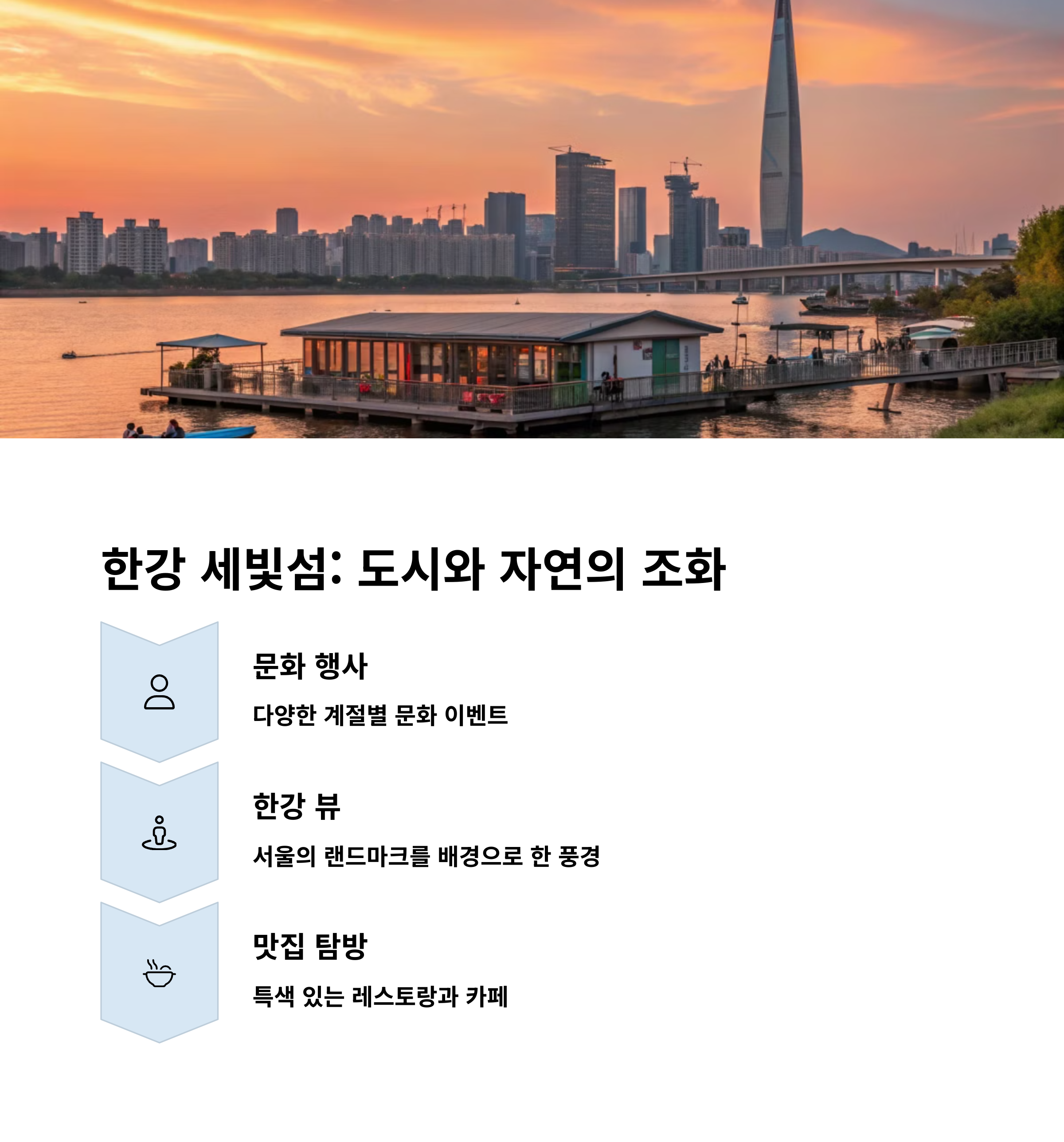 북한산 국립공원, 덕수궁, 세빛섬은 교통이 편리해 당일치기로 충분히 다녀올 수 있어요.